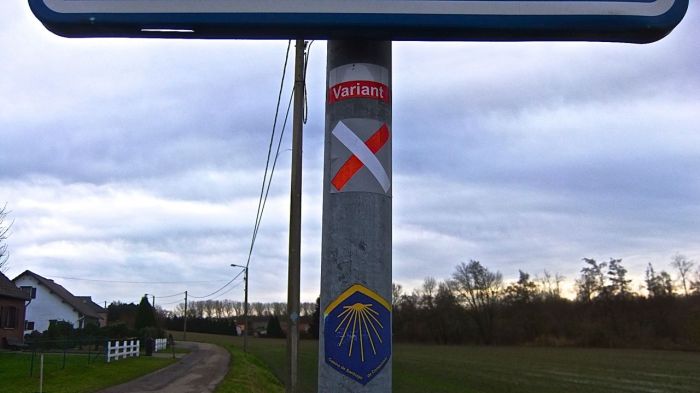 Wie erwarted bin ich unterwegs auf die Flämische Route des Jakobsweges gestossen. Meine Wanderung führte mich aber quer durchs Land, immer noch entlang der römischen Versorgungsstrecken aus dem Rheinland zur Küste. – As expected, I crossed the Flemish part of the Camino to Santiago (Way of St. James). My journey took me eastwards, more or less still following the supply routes of the Roman occupiers that led from the Rhine valley to the coast of the English Channel.