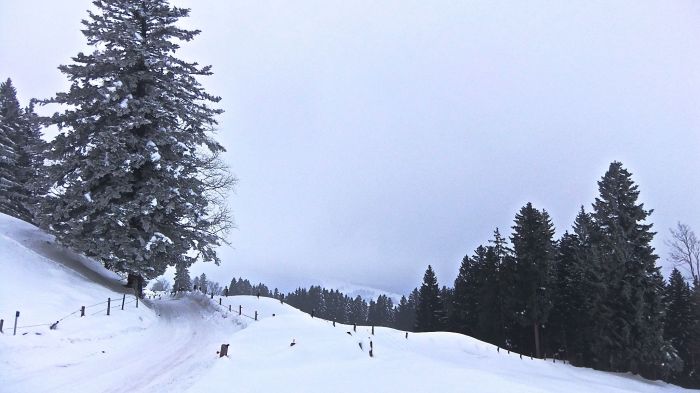 On the second day of traversing a mountainous section of the trail, I chose a less adventurous route. – Auf der zweiten Bergetappe meiner Reise wählte ich eine weniger abenteuerliche Route: Von Schwyz ging es über den Sattel, durch das Hochmoor bei Rothenturm, und über den Chatzenstrick. Leider hat die Sonne die stimmungsvolle Landschaft nicht mit ihren Strahlen berührt.