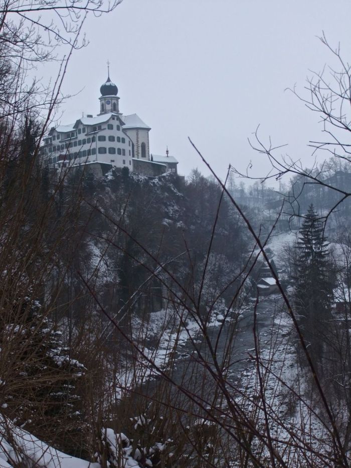 Leaving behind the security of the castle like monastery of Werthenstein that continues to provide good accommodation for pilgrims – Der ausgeruhte Pilger muss die Sicherheit des burgartigen Klosters wieder verlassen. (See: http://eichinger.ch/eichifamilyhom/Reisen/Jakobsweg/Schweiz/Luzernerweg/Etappen/Werthenstein.htm)