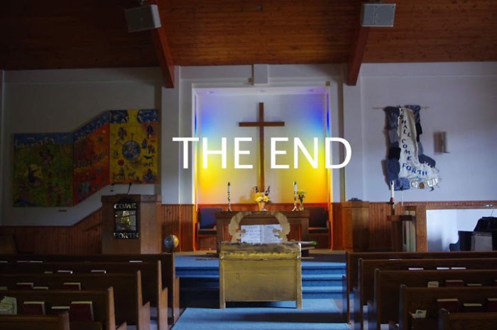 No it’s not the end, yet! Light effects in the sanctuary of Whitehorse United Church (photo credit: Whitehorse United Church)